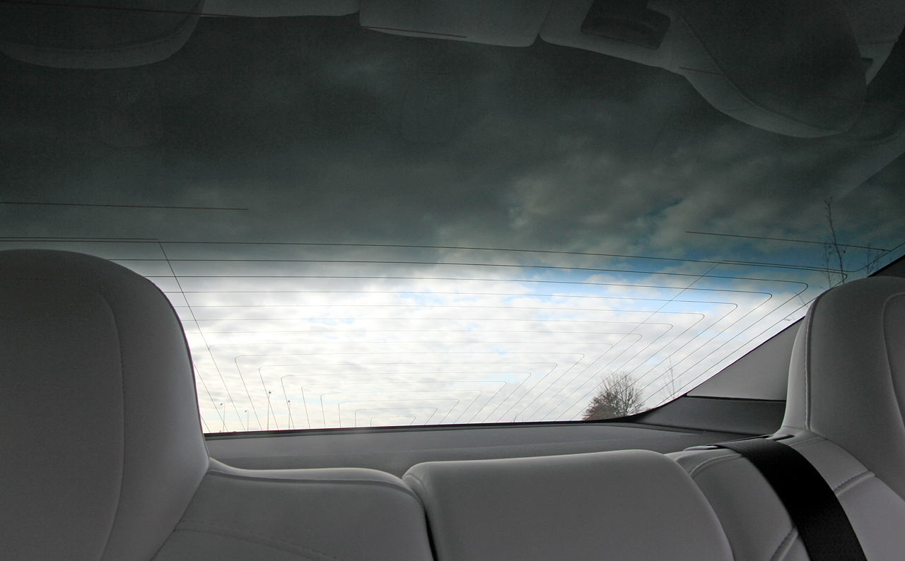 Model 3 ser lav ud, men du sidder relativt højt. Forruden er dyb og giver et fremragende udsyn fremad, lige som sideruderne også lukker masser af lys ind. Det samme gælder glastaget, mens den højtplacerede bagklap gør det svært at overskue bagenden. Det gør bare ikke så meget, for et bakkamera sørger for widescreen-kig bagud.