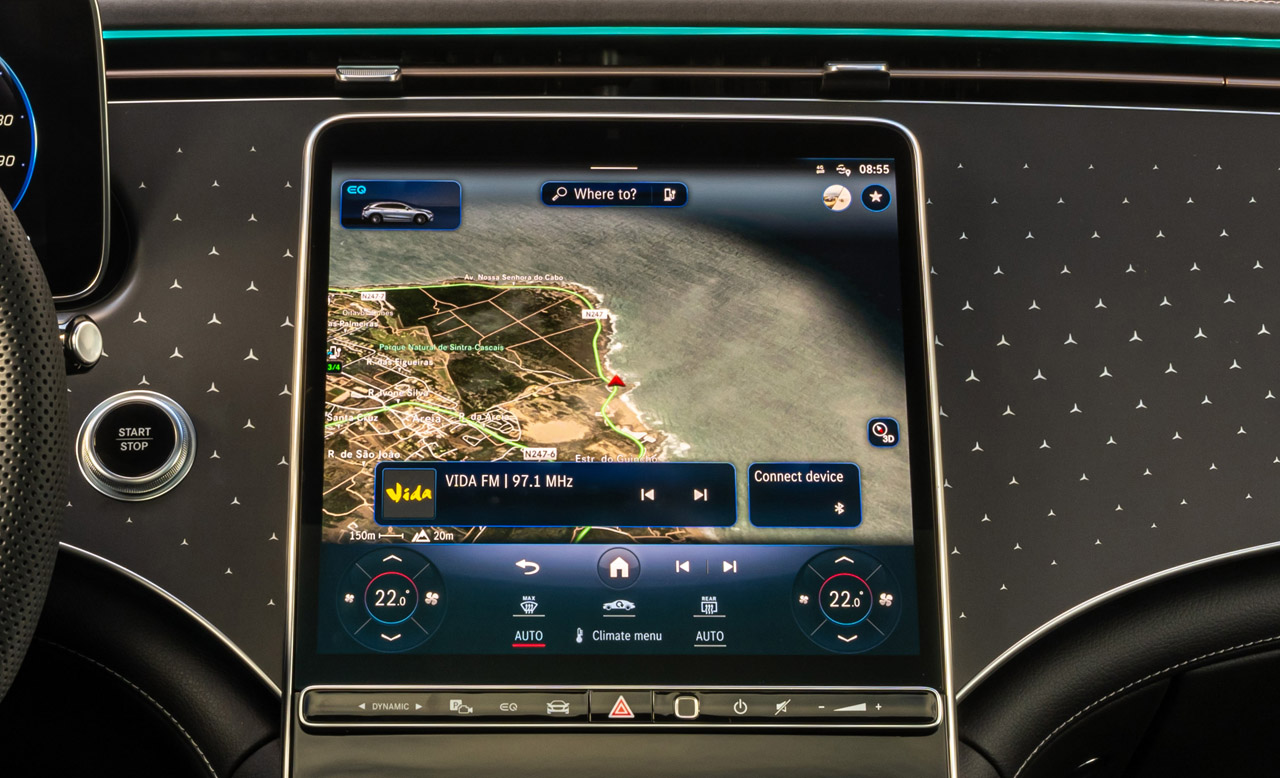 Oplevelsen bag rattet er også, at de aktive sikkerhedssystemer som for eksempel adaptiv fartpilot, aktiv vognbaneassistent og advarsel mod bagfrakommende cyklister ved åbning af døre fungerer overbevisende. Dog kunne man måske godt ønske sig, at den rutebaserede tilpasning af hastigheden, hvis man vælger at holde den aktiveret, var en smule mere forudseende og i lidt bedre tid reducerer hastigheden fra eksempelvis 80 til 50 km/t. Nedbremsningen påbegyndes først, når byskiltet er passeret.