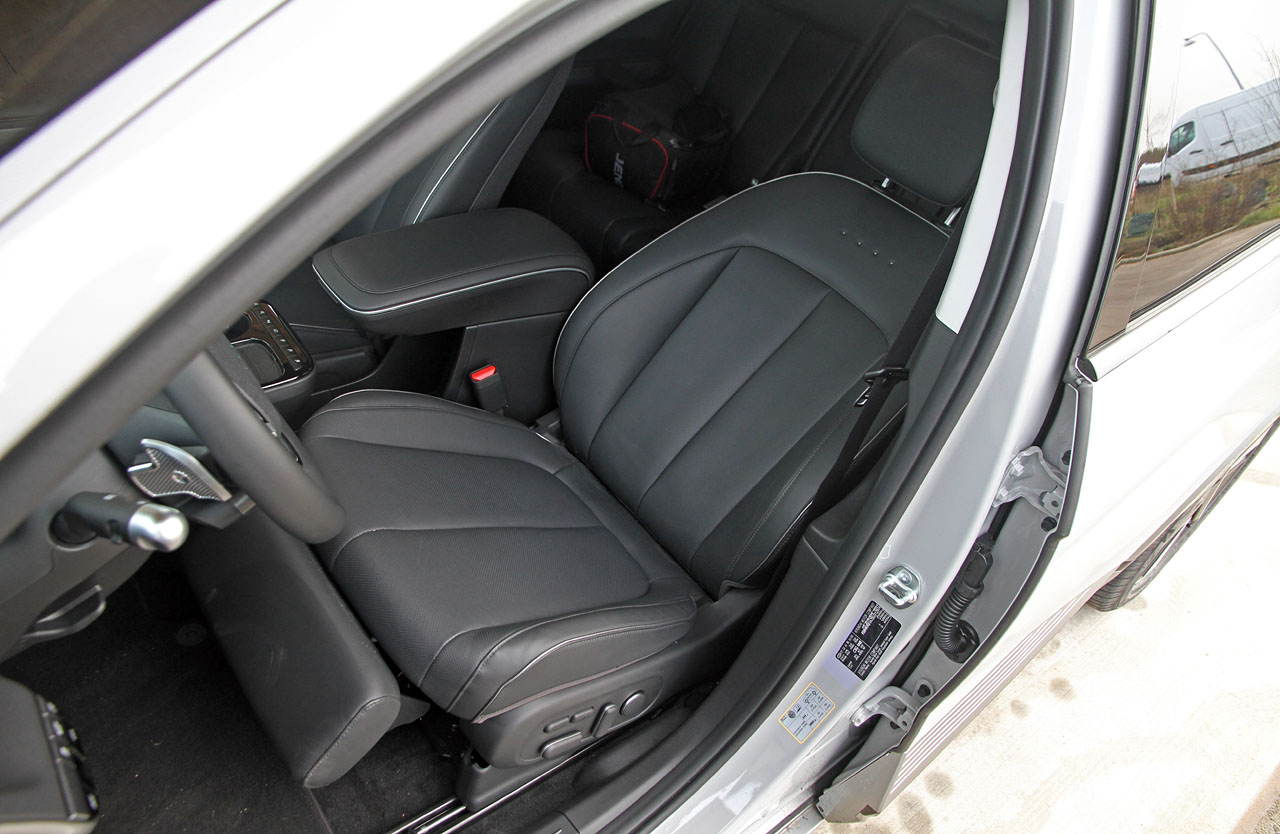 Automatisk nødbremse med fodgænger- og cyklistgenkendelse, , aktiv vognbaneassistent med følgefunktion, aktiv blindvinkelsensor, adaptiv fartpilot, vejskiltegenkendelse, head-up-display, syv airbags inkl. centerairbag mellem forsæder, varmepumpe, batterivarmer, LED-matrix lygter, regnsensor, aut. nedblænding af bakspejl, 2-zonet klimaanlæg, elektrisk justerbart førersæde m. lændestøtte, læderindtræk, varme/køl i forsæder, varme i rat, el-sidespejle m. varme, p-sensor for og bag, bakkamera, elruder for og bag, længdejusterbart bagsæde, elektrisk bagklap, 12,3 tommer digital instrumentering, 12,3 tommer touchskærm, navigation, trådløs Apple CarPlay/Android Auto og opladning af mobiltelefon, USB-oplader for og bag, mørktonede bagruder, 19 tommer alufælge.