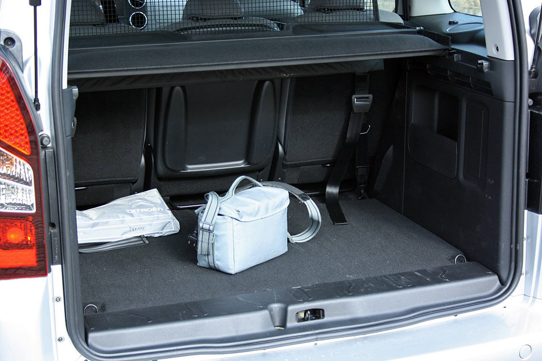 Berlingo er en ægte 'rumbil'. Der er højt til loftet, hvilket også giver plads til en såkaldt Modutop med glas i taget, som er ekstraudstyr til 19.000 kr., der også kan rumme en del pakkenelliker. Bagagerummet i Berlingo er 675 liter stort og regulært, og med bagsæderne ude er 'pakkerummet' på hele tre kubikmeter. Kun på bagsædet er pladsen ikke overdådig. I bredden er der fint plads til tre, men som i andre Citroën'er, der bygger på C4-platformen, er benpladsen ikke overvældende. Anden sæderække består ikke som standard af tre enkeltsæder - de kræver tilkøb af en fleksibilitetspakke til 9.000 kr. Kabinen kan i øvrigt rumme en ekstra sæderække med to (børne)sæder, men det koster 14.500 kr. ekstra og fås kun i højeste udstyrsniveau.
