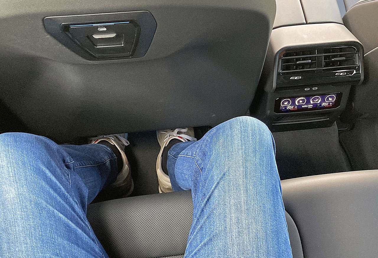 Pladsen på bagsædet kunne også være endnu mere generøs, hvis karrosseriet ikke skal levne plads til en benzin- eller dieselmotor under fronthjelmen. Men det er jo netop ideen med BMW’s ‘Power by Choice’, og bagsædet er stadig en stor bil værdigt.