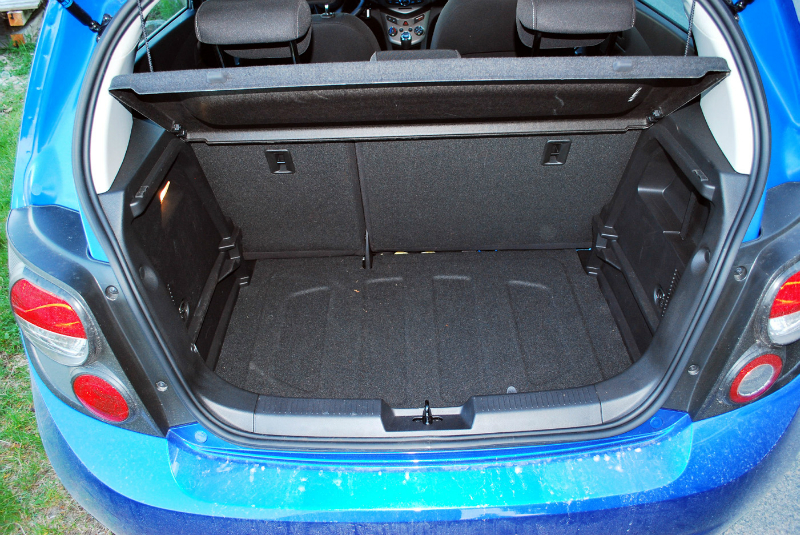 Bilen er ikke særlig stor, men opleves som væsentligt større – et trick som mange nye biler excellerer i. Som i Kia Rio har man i Chevrolet Aveo oplevelsen af at være kørende i en næsten-Golf - indtil man sætter sig om i bagsædet. Mødet med virkeligheden ændrer dog ikke ved, at der er lys og luft for fører og forsædepassager som i en større bil. Det går også an på bagsædet, men salgsbrochurens vidtløftige snak om 5 personer i bilen skal man tage med et gran salt. Bagagerummet er godkendt på 290 liter, hvilket er stort set identisk med Kia Rio (288).