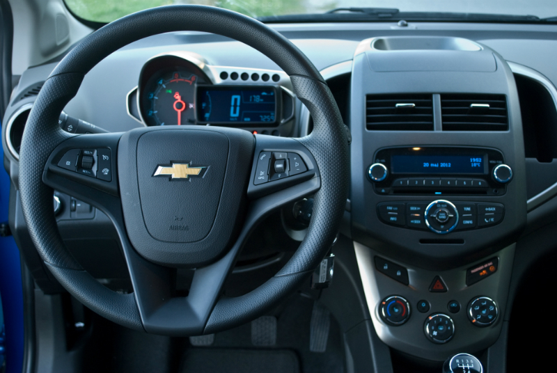 Ergonomisk er der ikke meget at komme efter. Sjældent møder man som høj person en bil, hvor forsædet faktisk kan komme for langt ned og for langt tilbage – men Aveo er generøs med justeringsmuligheder for alle størrelser. Man sidder kort sagt godt, og rattet kan tilmed komme langt nok tilbage, så man rent faktisk kan køre bilen med lidt åndfuldhed. Desværre er rattet rigeligt glat.