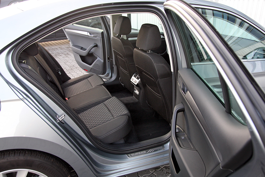 Ganske enkelt enorm. Foran er der lidt mere luft omkring hovedet end i Passat, tilsyneladende fordi forruden er lidt stejlere, og på bagsædet sætter Superb nok engang standard for plads i firmaklassen. Heromme matcher den gæstfri Skoda faktisk lang-udgaverne af 'rigtige' limousiner som Mercedes S-klasse og BMW 7-serie – og de kan ikke engang prale af de indbyggede paraplyer, som Superb disker op med i begge fordøre. Det er tjekket – ligesom bagagerummet, der med en kapacitet på 625 liter og praktisk bagklap nærmest gør stationcar-udgaven overflødig.