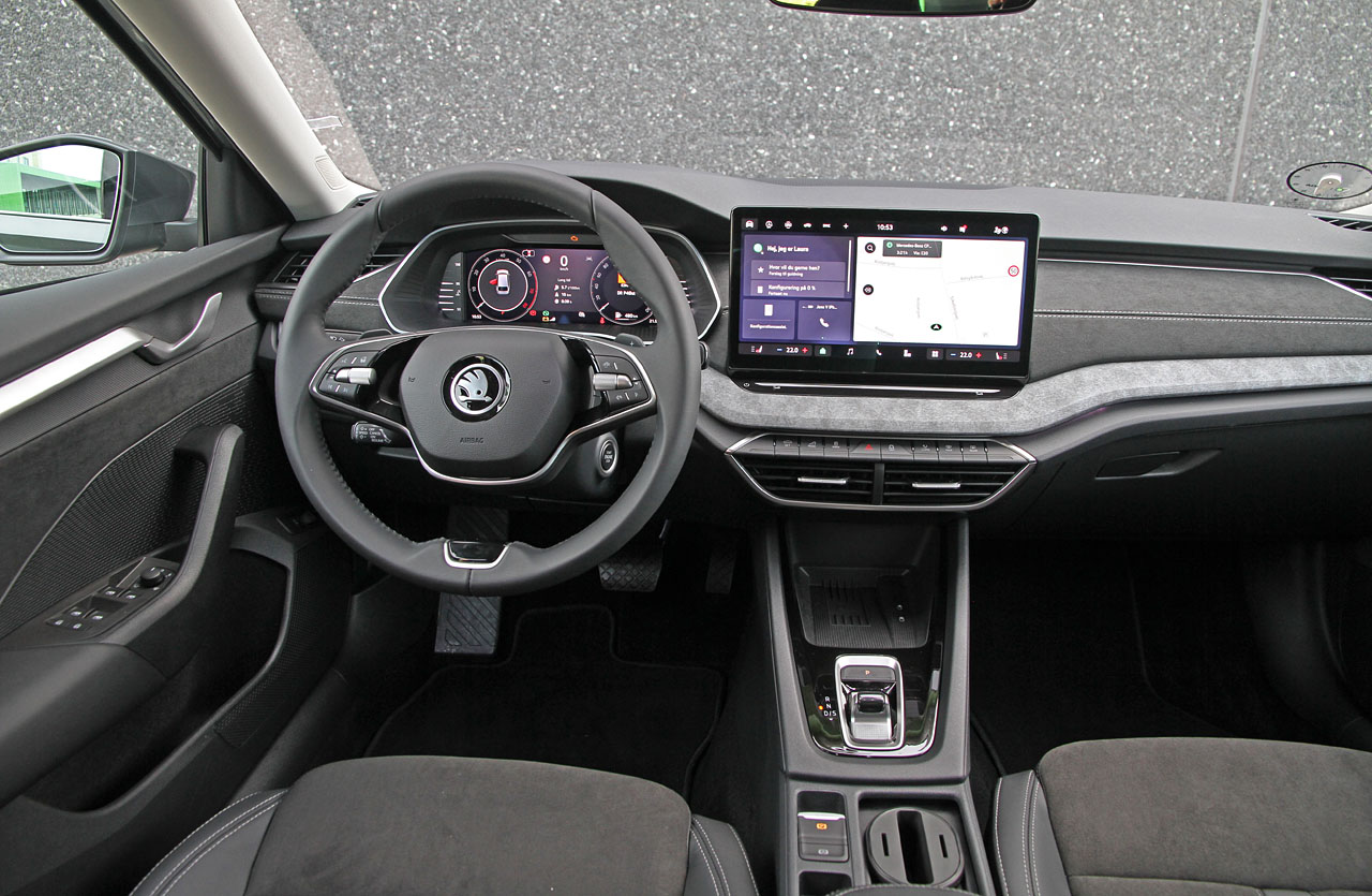 Skoda Octavia kører med den velkendte 1,5 liters turbobenziner, som ligger i et væld af modeller fra VW-koncernen. Den bliver tilsyneladende hele tiden finpudset, for i Octavia anno 2024 er motoren mere støjsvag og kultiveret end nogensinde. Med mild hybrid teknik får den et lille krafttilskud ved igangsætning, lige som start-stop automatikken fungerer blidt. Til gengæld kan du hverken lade batteriet i en stikkontakt eller køre blot få kilometer på strøm alene. Ikke desto mindre nåede vi et imponerende snitforbrug på 19,6 km/l i snit. Det er bedre end de 18,8 km/l vi kørte i dieseludgaven i 2020.