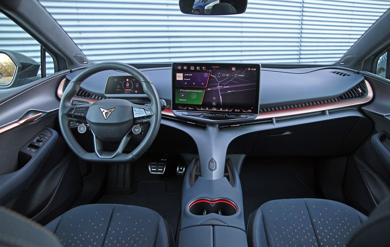 Effektiviteten er gennemsnitlig. Cupra lover 6,0 km/kWh efter WLTP-normen, vi målte 4,7 km/kWh i en testuge med meget landevejskørsel og 5-9 graders varme. I køligt vejr skal du regne med 325 km rækkevidde, om sommeren op mod 400 km. Det er godkendt.