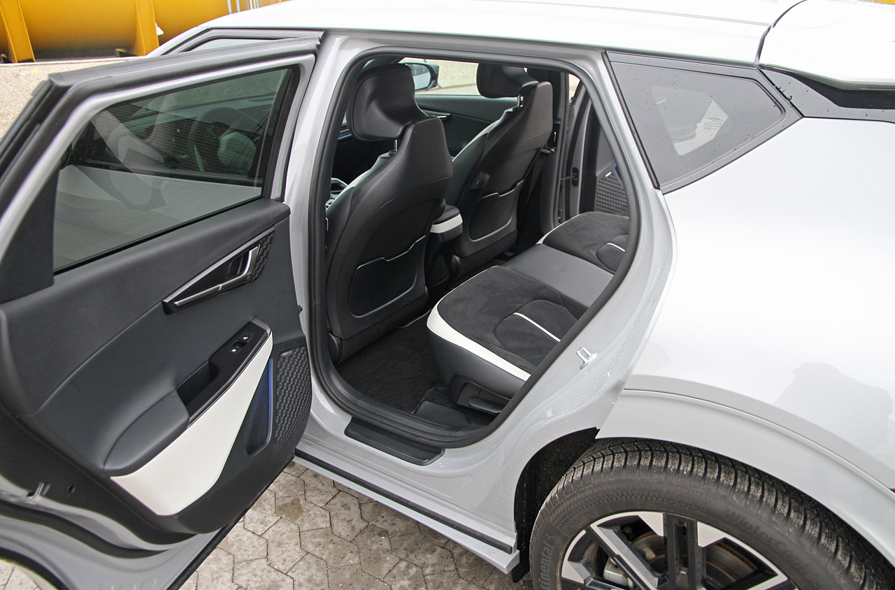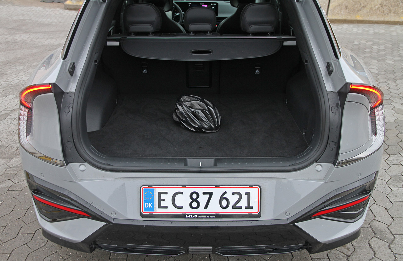 Kia EV6 er en bred bil, så der er langt over til passagersædet. Bagsædet med hvilebeslag er også bredt som en bænk i parken, og med fladt gulv sidder du også fint på midterpositionen. Benpladsen er generøs, men desværre skal du kun være iført strømpesokker, hvis du vil lirke fødderne ind under forsæderne. En typisk udfordring i mange elbiler, hvor gulvet er højt placeret for at få plads til batteripakken nedenunder. Omvendt er hovedhøjden fin, selv om EV6 er næsten 10 cm lavere end SUV-typer som VW ID.4 og Skoda Enyaq. Finish og kvalitetsindtryk placerer sig et sted midt i mellem de to konkurrenter: Kabinen i EV6 er overvejende pakket ind i bløde plastoverflader og fremstår mere indbydende end f.eks. en ID.4. Bagagerummet er stort, selv om den praktiske bagklap skråner meget og rullegardinet over bagagen ikke just kører på skinner. Der er endda et ekstra kælderrum under gulvet, og foran er der blevet plads til et stort frunk, der sluger meget mere end et ladekabel.
