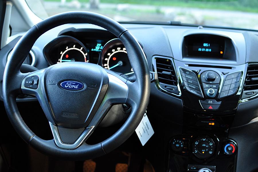 Man sidder rigtig godt bag rattet i en Fiesta. Forsædet støtter godt, og rattet kan justeres tilpas meget til, at det er let at finde en god kørestilling.