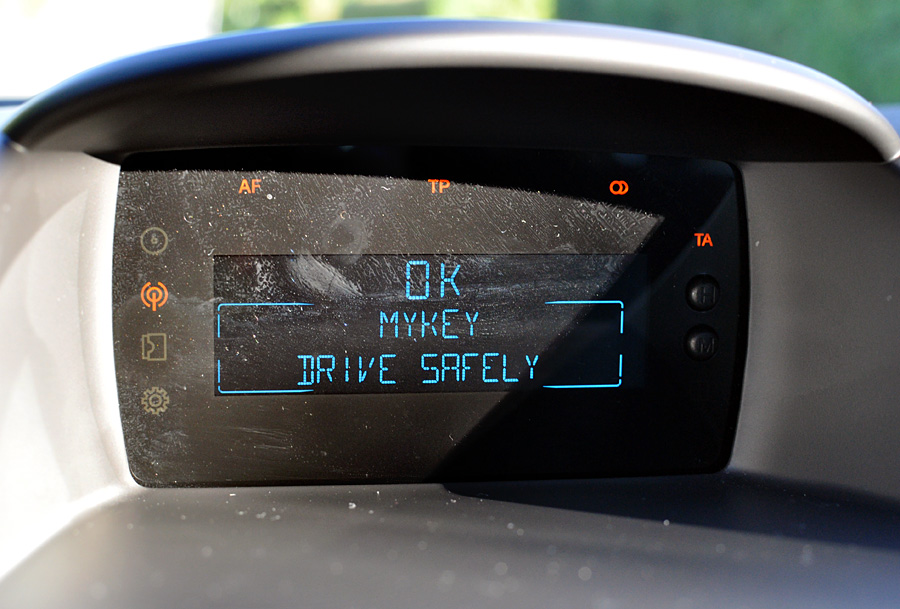 Instrumentbordet ser futuristisk ud og ligner en mellemting mellem en mobiltelefon og interiøret i et rumskib, men instrumenterne er lette at overskue.