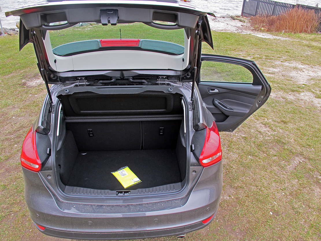 Fem personer finder sig fint tilrette i en femdørs Focus. Bagsædet er udformet, så det tilgodeser to voksne, men der kan godt sidde tre. Benpladsen bagi er godkendt men ikke prangende. Til gengæld er bagagerummet reelt, og bagsmækken åbner forbilledligt højt. Dog savner lastrummet fikse detaljer som ekstra plads under gulvet, fastgørelsesmuligheder til indkøbsposer og mulighed for at lægge bagsæderyggen ned med et enkelt greb. Kabinen har mange fralægningsmuligheder og er præget af slidstærke materialer på kanten af det kedelige, men det virker gennemført.