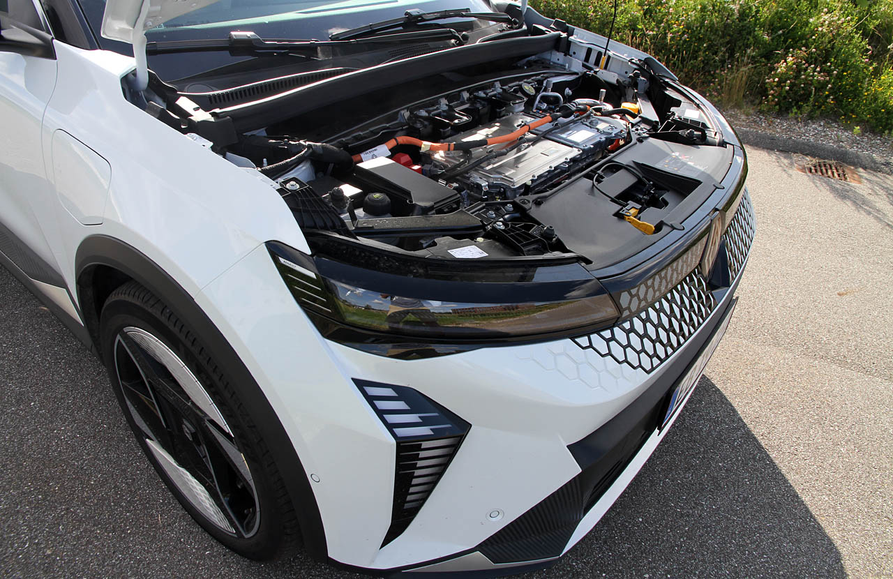 Men tro nu ikke, at Scenic E-Tech vralter rundt som en udtjent fransk malkeged. En af fordelene ved at gå en kvart størrelse ned, er at vægten er fulgt med ned på 1.850 kg. Det er 200-350 kg mindre end de fleste konkurrenter – til trods for, at Scenics batteri er klassens største. Det er godt gået, og giver Scenic en fin acceleration og et fornuftigt forbrug. Vi målte 5,8 km/kWh ved 20 grader og en del motorvej. Absolut godkendt og tæt på de lovede 6 km/kWh efter WLTP.
