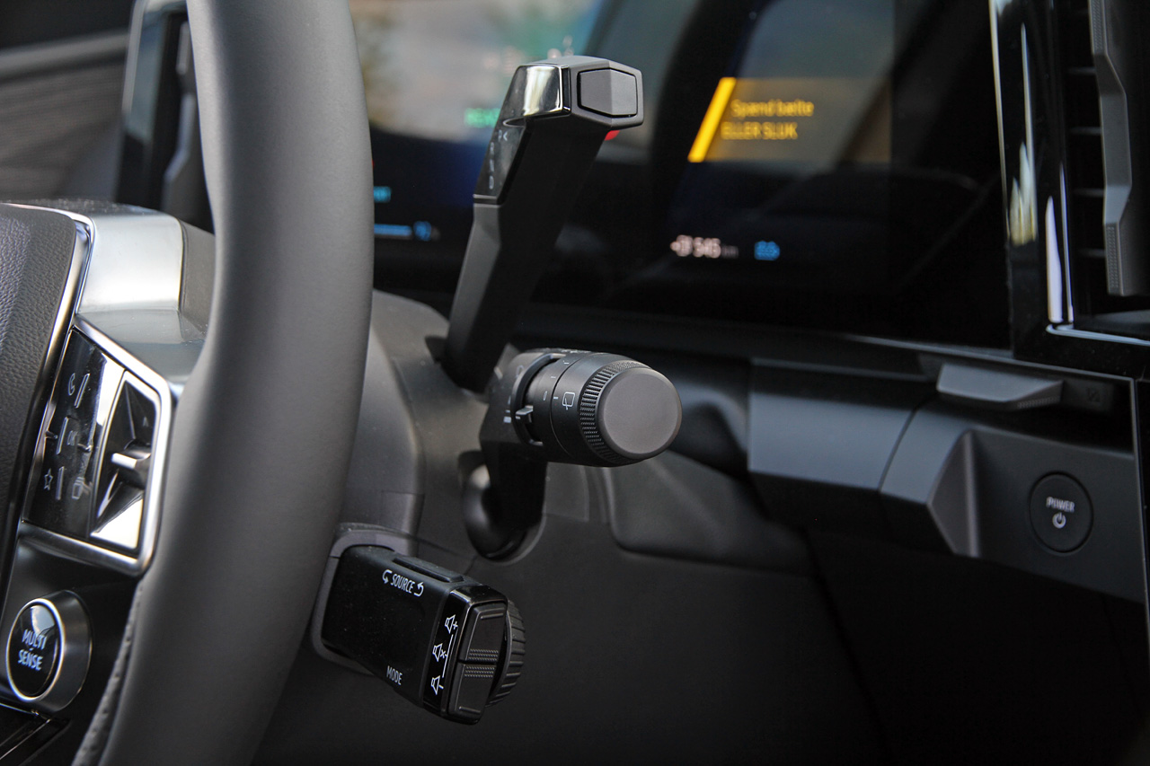 De gode takter fortsætter med betjeningen, hvor klimaanlægget styres med fysiske knapper, mens lyd, fartpilot og kørecomputer kontrolleres med trykknapper i rattet. Gearvælgeren er en stilk bag rattet, som man også hurtigt vænner sig til. Også selv om gearvælgeren kæmper om pladsen med armen til vinduesviskerne og en lille satellit, der styrer lydanlægget. Man bliver hurtigt fingernem og glæder sig over, hvor mange funktioner, der på den måde styres ved hjælp af fysiske greb og knapper. Det virker bare. Og er godt set af Renault, for Scenic er lettere at vænne sig til end mange andre elbiler.