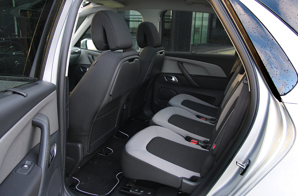 Børnene elsker Citroën C4 Picasso fordi den er høj og har store sideruder, som det er nemt at kigge ud af. Bagsæderne kan længdejusteres, og har du lyst til en 'morfar' kan sæderne tiltes bagover i hvileposition med et enkelt greb. Topudgaven har flyborde bag på forsæderne, men de hugger desværre en del af benpladsen for voksne passagerer. Finishen er fransk, når det er bedst: Citroën leger med både farver og overflader i C4 Picasso, der virker bundsolid – selv på skarpe ujævnheder er C4 kabinen fri for raslelyde.