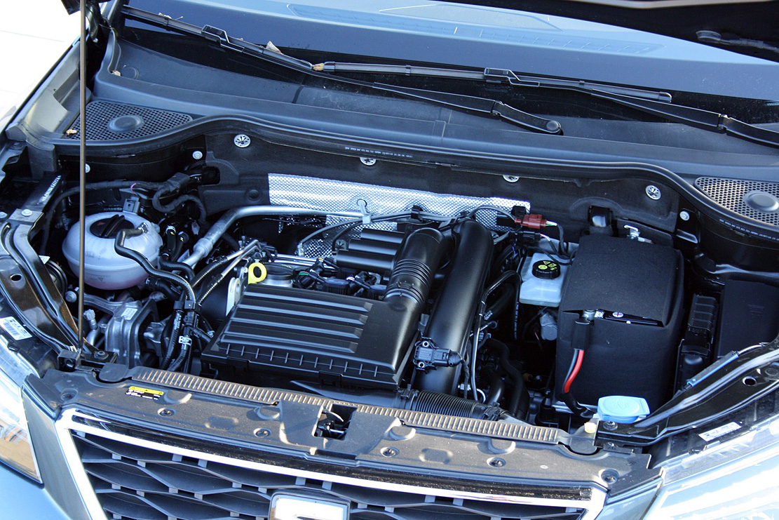 Fin men overraskende forslugen. Den 1,4 liters turbobenziner, som findes i et hav af VW-koncernens biler, er og bliver en lille perle og passer godt til Ateca - ikke mindst sammen med den 7-trins DSG-gearkasse. Den koster 30.000 kr. ekstra, men har du først prøvet den, vil du ikke undvære. De 150 hk benzinheste arbejder tyst ude foran og giver tilpas med kraft til Ateca. Motoren går ned fra fire til to cylindre, når speederfoden lettes. Det sker næsten uden du opdager det, og det sparer på de dyre dråber. Ateca med DSG er opgivet til 18,5 km/l med DSG-gear, men vi nåede kun 12,2 km/l i testugen sammensat af 13,7 km/l ved motorvejskørsel og 9,5 km/l i byen. Det har vi før gjort bedre med 1,4 TSI'eren, men den højbenede, firkantede karosse og en ekstra vægt på ca. 150 kilo i forhold til fx Leon suger i den 50 liters tank.
