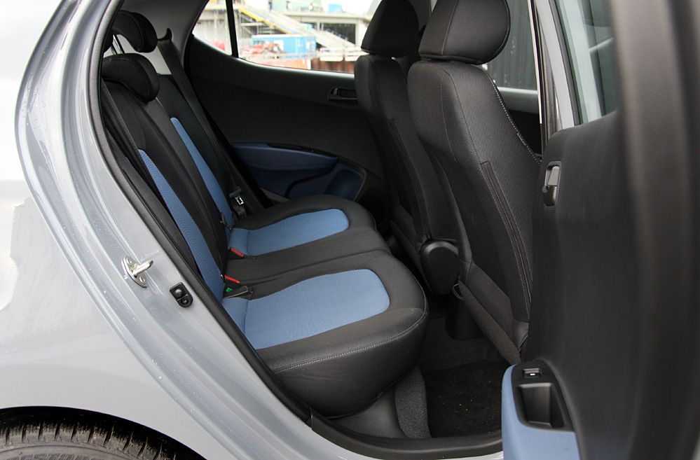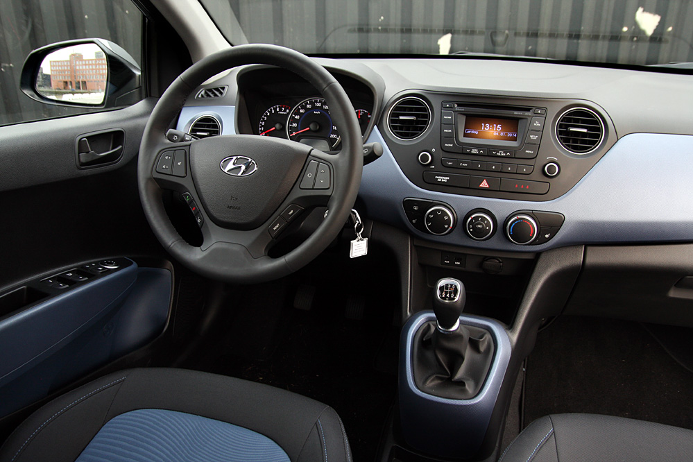 Hyundai i10 er intelligent udhulet og en af den slags biler, der virker større indeni, end den synes udefra. Selv med undertegnedes 190 cm bag rattet befinder den typiske kernefamilie med mor, far og to store børn sig glimrende i den indbydende kabine.
