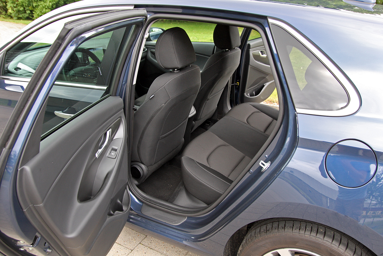 Mens der er masser af plads til både brede skuldre, lange ben og højt hår på forsæderne i Hyundai i30, skuffer benpladsen på bagsædet.