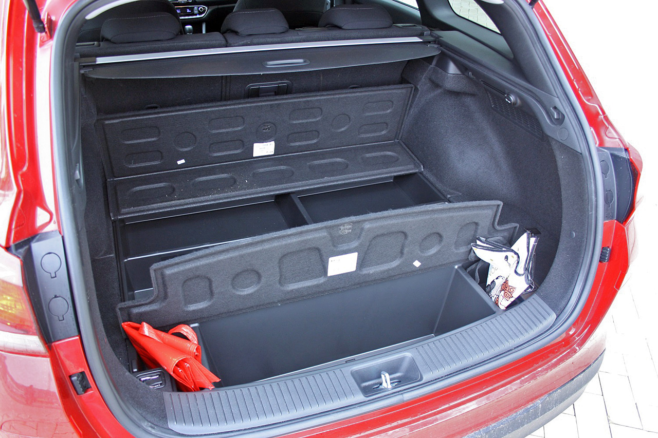 Inde både skuffer og begejstrer Hyundai i30. Ikke mindst i bagagerummet, der er yderst velindrettet og byder på mere end 1,5 gang mere plads end i hatchback-udgaven - hele 602 liter - er der plads til. Vi er vilde med det utal af praktiske opbevaringsrum, der gemmer sig under bagagerummets gulv - store som små - hvor ting kan stuves væk, så de ikke skøjter rundt bagi. Særligt gennemtænkt er et ekstra dybt rum lige inden for bagsmækken, som er helt tæt. Her kan du fx dumpe vådt tøj ellers dagens fangst fra fisketuren. På bagsædet skuffer testbilen til gengæld, selv om stationcaren er hele 25 cm længere end den femdørs version. Trods en velvoksen akselafstand på 265 cm er benpladsen på bagsædet til den beskedne side, især hvis chaufføren er langbenet. Her var forgængeren faktisk bedre. Kunne man ikke have snuppet et par centimeter af det enorme bagagerum og fornøjet bagsædefolket med lidt mere benplads?