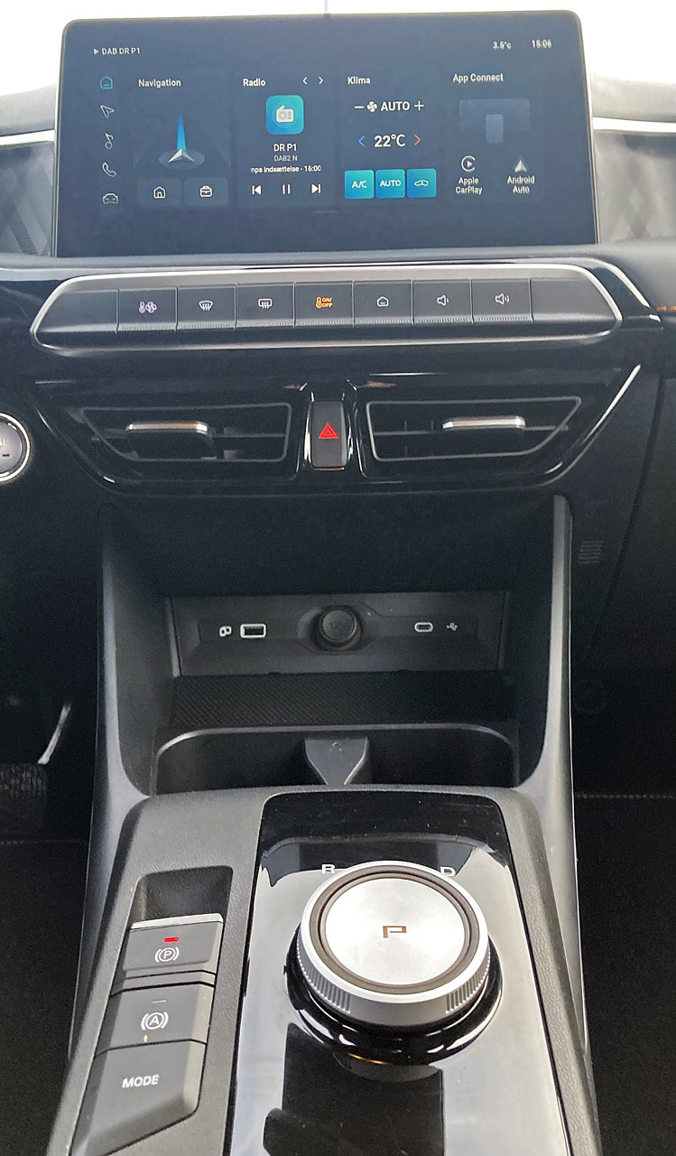På plussiden tæller de velfungerende knapper på rattet og “klik”-knapper under den 10,25 tommer store infotainmentskærm til bl.a. elbagruden.