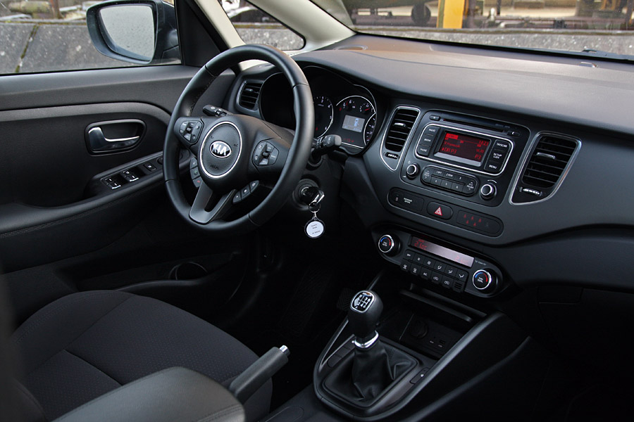 Her holder Kia til gengæld nogenlunde niveau. Med Ceed satte koreanerne et tårnhøjt niveau for, hvad man kan forvente af finish og udstyr for et prisbilligt mærke, og Carens følger trop. Som chauffør sidder du med et godt forhold mellem rat, sæde og pedaler med god udsigt over vejen. Betjeningen er logisk, og mange knapper og betjeningsgreb klikker og fungerer decideret lækkert. Endelig er listen over standardudstyr intet mindre end overdådig. Vi nævner i flæng detaljer som varme i de 4 forreste sæder, fartpilot, klimaanlæg, LED-kørelys, tagbøjler, læderrat, Bluetooth og USB-stik. Koreanerne sparer ganske enkelt ikke på noget.