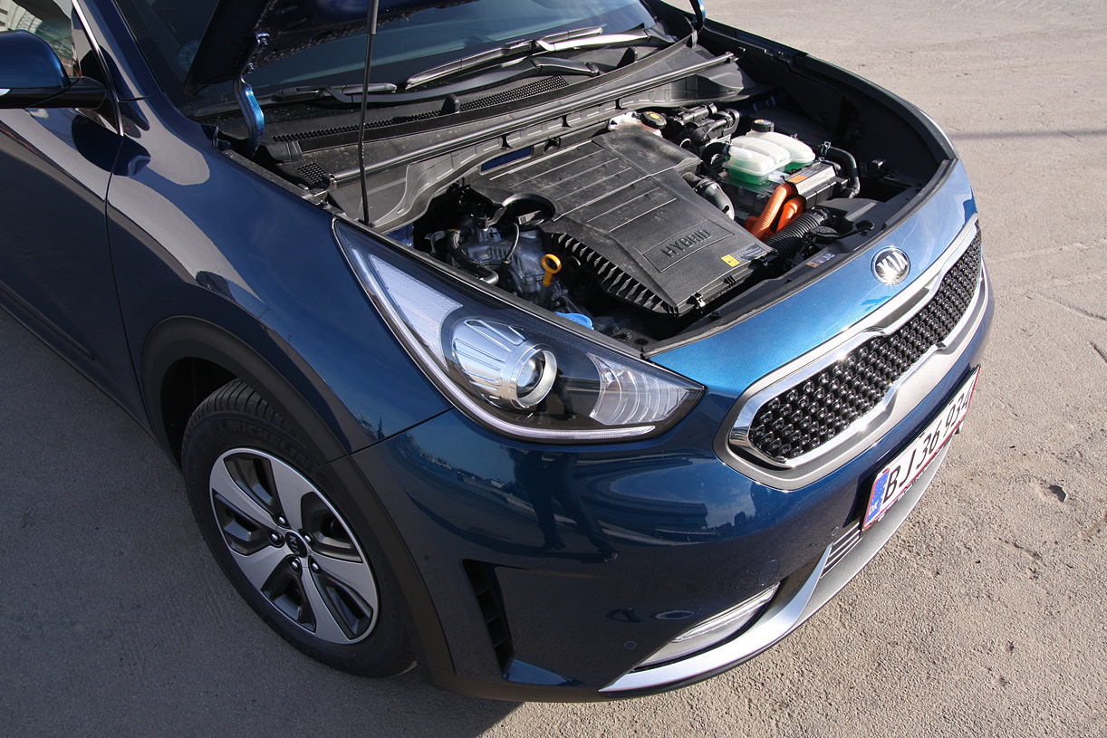 Kia Niro har to: En 1,6 liters benzinmotor med beskedne 105 hk og forbrænding efter den økonomiske Atkinson-cyklus samt en elmotor med 43 hk. Systemeffekten er på 141 hk og de administreres af et seks-trins automatgear med dobbeltkobling. Det tekniske trekløver samarbejder forbløffende sømløst og dobbeltkoblings-gearkassen giver klart Kia et teknisk forspring til Toyota, der holder fast i et trinløst CVT-gear. Niro skifter simpelthen mere 'organisk', og kun ved fuld acceleration hører du det monotone brøl fra benzinmotoren, der ofte præger hybrider.