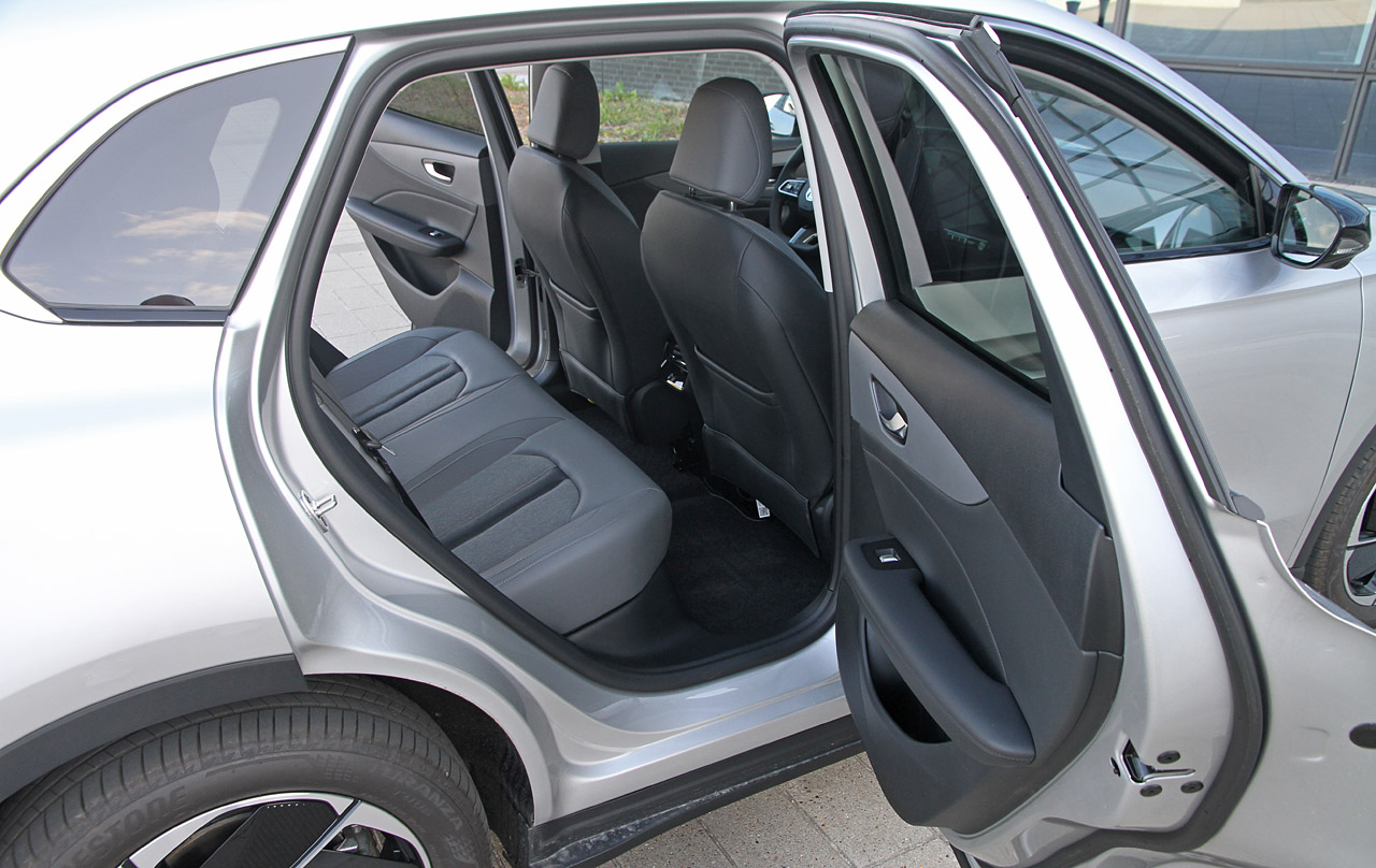 MG får meget ud af bilens relativt kompakte ydermål - både for og bag er der god plads. På bagsædet er der plads til tre voksne, og de kan få selv store sko ind under forsæderne - ingen selvfølge i elbiler. I modsætning til forsædet er siddehynden vinklet så meget, at der også er støtte under lårene for voksne.