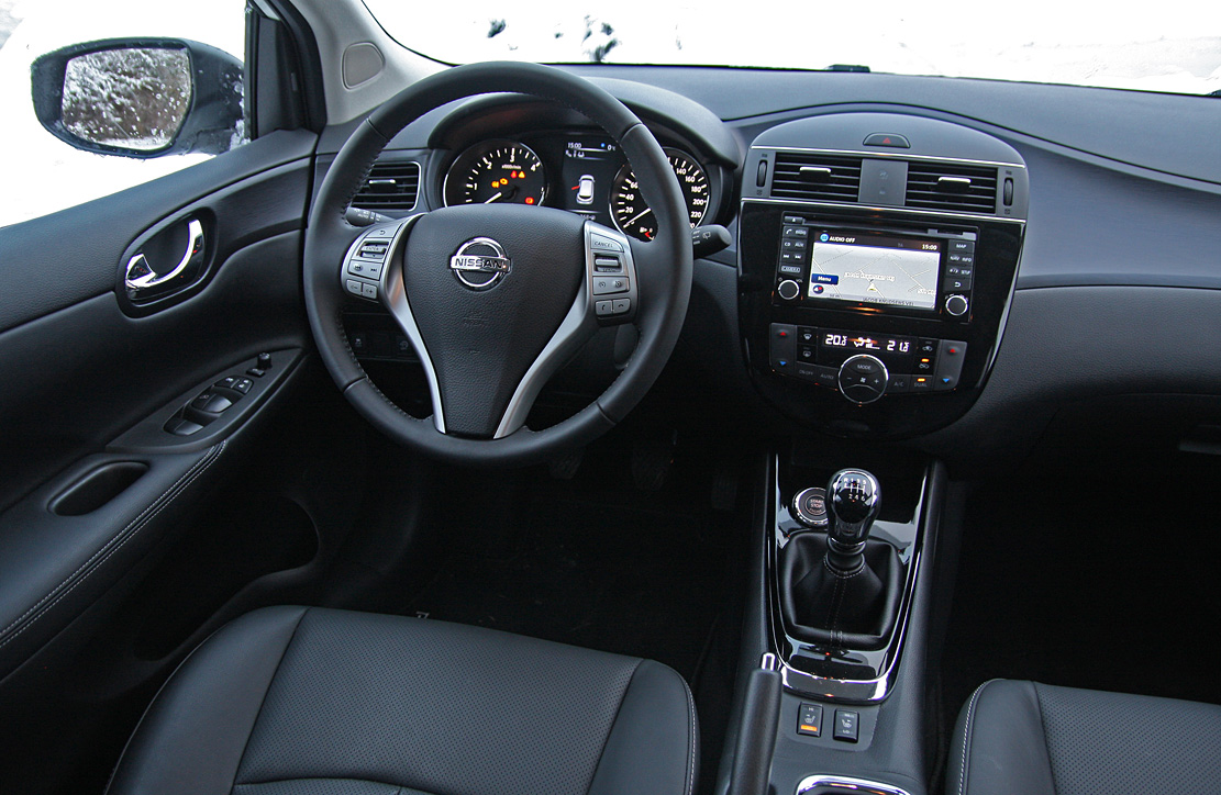 Stor, rummelig og lidt højere end konkurrenterne, inspireret af Pulsars nære slægtning, crossoveren Qashqai. Kun det tjekkiske pladsmonster Skoda Octavia følger Pulsar til dørs på rå plads. På bagsædet kan du faktisk lægge benene over kors, desværre får japanerne ikke det bedste ud af klassens længste akselafstand: Siddehynden er så flad, at langbenede passager savner støtte under lårene, og så forsvinder langturskomforten i ømme balder. En unødvendig svipser. Finishen med både hård og blød plastic er gennemsnitlig. Til gengæld hørte vi ingen knirkelyde i testugen, og det er ingen selvfølge - heller ikke i dyrere biler.