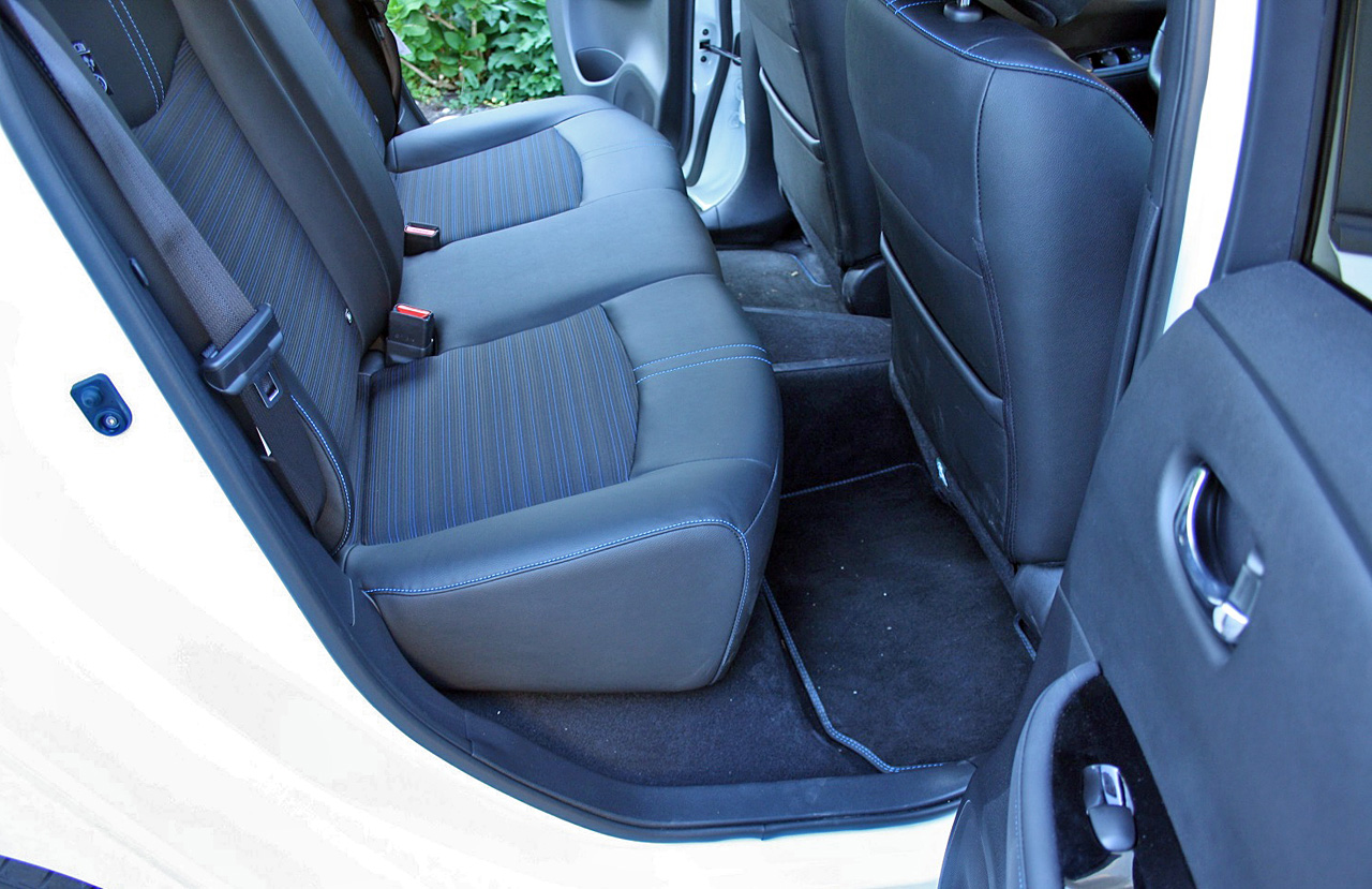 Her er stort set ingen fremskridt siden forgængeren. Den nye Nissan Leaf er ganske vist bygget på en ny platform, men målene er stort set som forgængerens. Akselafstanden er uændret 270 cm, og det bestemmer et langt stykke hen ad vejen pladsen i kabinen - ikke mindst på bagsædet. Her sidder du højt - oven på batteripakken - og det giver egentlig et godt udsyn fremad. Benpladsen er også fornuftig, men sædet har en lidt underlig udformning og giver ikke den bedste siddekomfort. Nu er det jo en elbil, så der er selvfølgelig elvarme i bagsædet. Dejligt på en kold dag. Til gengæld savner vi de andre komfort-features, vi ellers forventer af en bil til 300.000 kr.: Friskluftdyser og 12V-/USB-stik. I bagagerummet spejder vi forgæves efter nyskabelser. I stedet finder vi gammeldags, store hjulkasser, der stjæler plads. De to typer ladekabler, du er nødt til at køre rundt med fylder også i det 420 liter bagagerum og en høj, snæver læssekant trækker heller ikke op.
