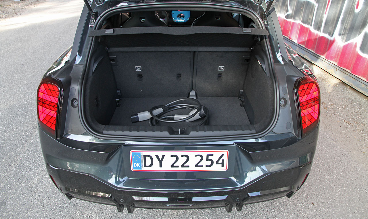 Elmotoren er en sand strømsparer. Mini lover et behersket forbrug på 6,8 km pr. KWh. Uden at skåne speederen nåede vi 6,5 km pr. kWh i en testuge med 9-16 grader og en kombination af lidt motorvej og mere landevej. Det svarer til en reel rækkevidde på lidt over 300 km. Det gør Mini Aceman til en af de mest effektive elbiler, vi har testet – og vi tester vel at mærke med 130 km/t på motorvej. Det gør også Aceman lige så langtursduelig som mange SUVere med en officiel rækkevidde op mod 500 km. SUVere bruger mere strøm på motorvej og ender derfor ofte på en reel rækkevidde på samme 300 km som Aceman.