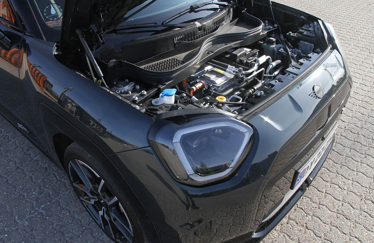 Mini er fortsat den eneste i klassen, der har ofret et avanceret multilink-ophæng på bagakslen. Sammen med et direkte styretøj og en undervogn spændt op til lir, gør det forskellen. En – for en elbil – moderat vægt på 1.785 kg og lavt tyngdepunkt skærper også appetitten på sving, idealkurver og lynhurtige accelerationer.