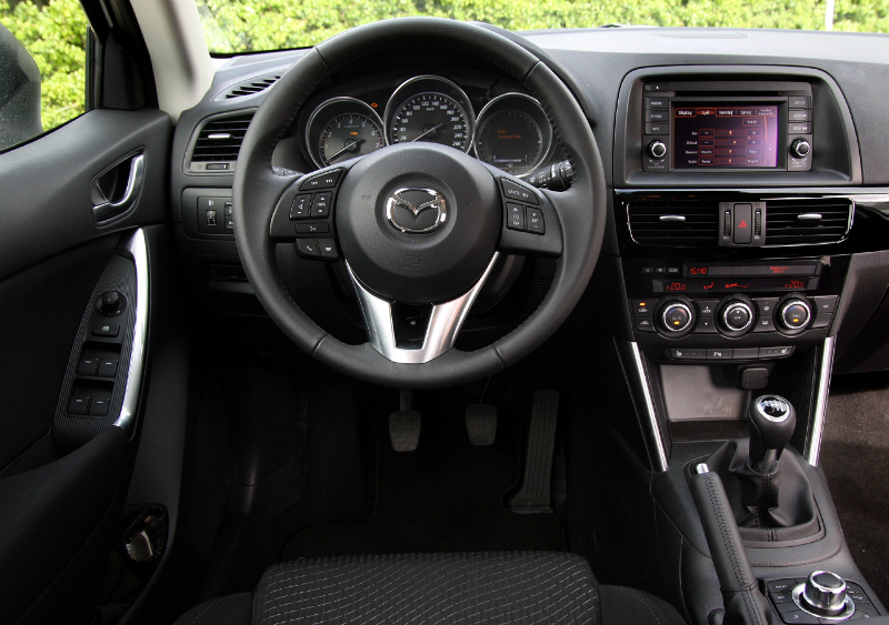 Når man tænker på Mazda-modeller som 2, 3, 6 og MX-5 samt de gode Skyactiv-tanker om lav vægt og høj køreglæde, bliver man unægtelig skuffet. CX-5 affjedringen falder aldrig rigtigt til ro, men lider af den samme tunge og let hoppende adfærd, typisk for mange offroadere – og CX-5 er endda en slanket ”softroader” med forhjulstræk. Styringen er træg og tung. Først når man virkelig udfordrer CX-5, viser den sig at være ganske sportslig, med en styring der bliver skarpere og en bagvogn, der gerne hjælper dig rundt i kurven med en kontrolleret udskridning.