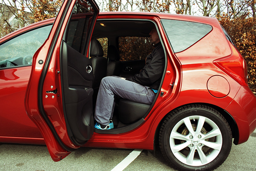 Takket være et beslag på bagsædet, der gør, at det kan skydes frem og tilbage alt efter, om man har brug for ekstra bagageplads eller god benplads for passagererne, kan Nissan Note nærmest få plads til et helt hold squaredancere på gulvet ved bagsædet.