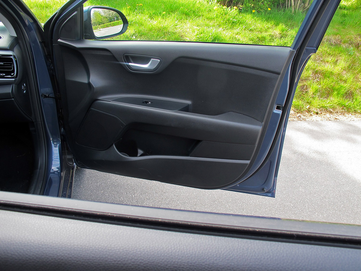Væsentligste ændring set fra førersædet i Rio er, at der nu er den obligatoriske trykfølsomme skærm øverst midt på instrumentbordet. I Advance-udgaven rummer den både navigation, bakkamera, Apple CarPlay mm. Der er også blevet plads til en mindre infoskærm midt i instrumenthuset, ligesom der er ryddet op i knapper og layout, så det hele nu fremstår mere harmonisk og stringent. Den hårde plast er dog stadig gennemgående, selv på dørsiderne, og det virker lidt fjendtligt, men finishen er i øvrigt pæn. Bag rattet sidder selv høje personer lavt men godt i faste, velformede sæder. Armlæn mellem forsæder og fralæggeplads specielt designet til en smartphone er gode detaljer.