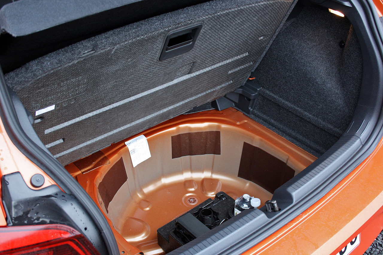 Selv på testbilens store 17 tommer alufælge - 15 tommer stålfælge er standard. Samspillet mellem motoren, den letgående gearkasse og styretøjet, der opleves præcist og letgående, bliver man hurtigt dus med, og mange vil nok som os glæde sig over en god retningsstabilitet og begrænset følsomhed over for sidevind på motorvejen. Samtidig er støjniveauet i kabinen yderst behageligt, undtagen under hård acceleration, hvor den lille motors tre cylindre knurrer højlydt.