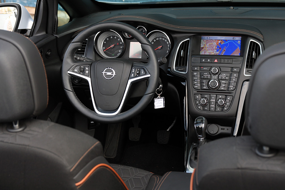 Opel er dygtige til førerpladser og det gælder også Cascada: Sæderne støtter godt og forholdet mellem sæde, rat og pedaler er virkelig behageligt. Den fladtliggende forrude skærmer effektivt mod vinden og monterer du anti-træk gardinet over bagsæderne, byder Opel Cascada på noget af det bedste vind-beskyttelse blandt markedets cabriolet'er.
