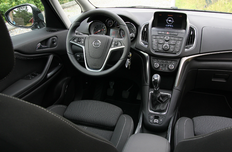 Lækker og komfortabel. Opel er efterhånden specialister i at indrette førerpladser, hvor du sidder godt i glimrende sæder. Zafira er ingen undtagelse og fremstår oven i købet i en finish, der sagtens kan måle sig med eksempelvis VW’s. Midterkonsollen har et væld af knapper, men betjeningen er i øvrigt logisk. Typisk for Opel har gearstangen lange vandringer, men skifter præcist og er placeret perfekt lige ved hånden.