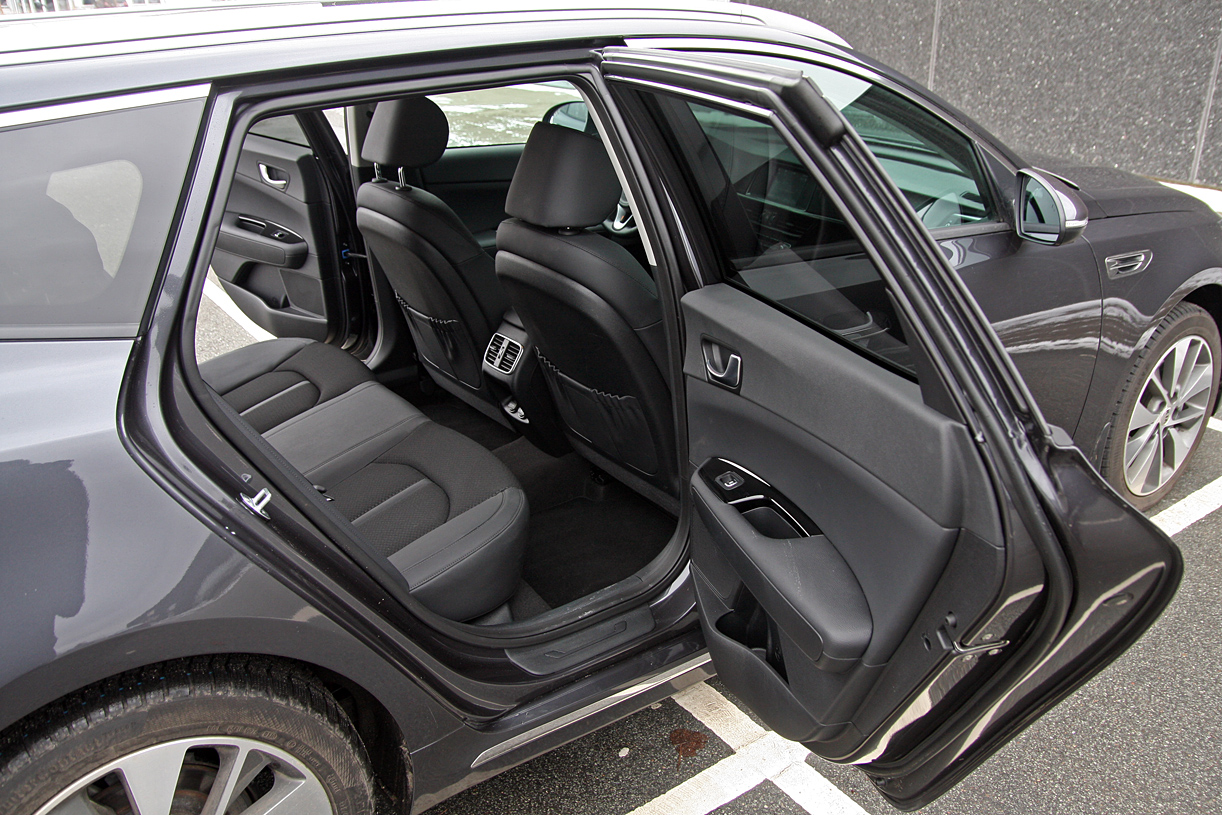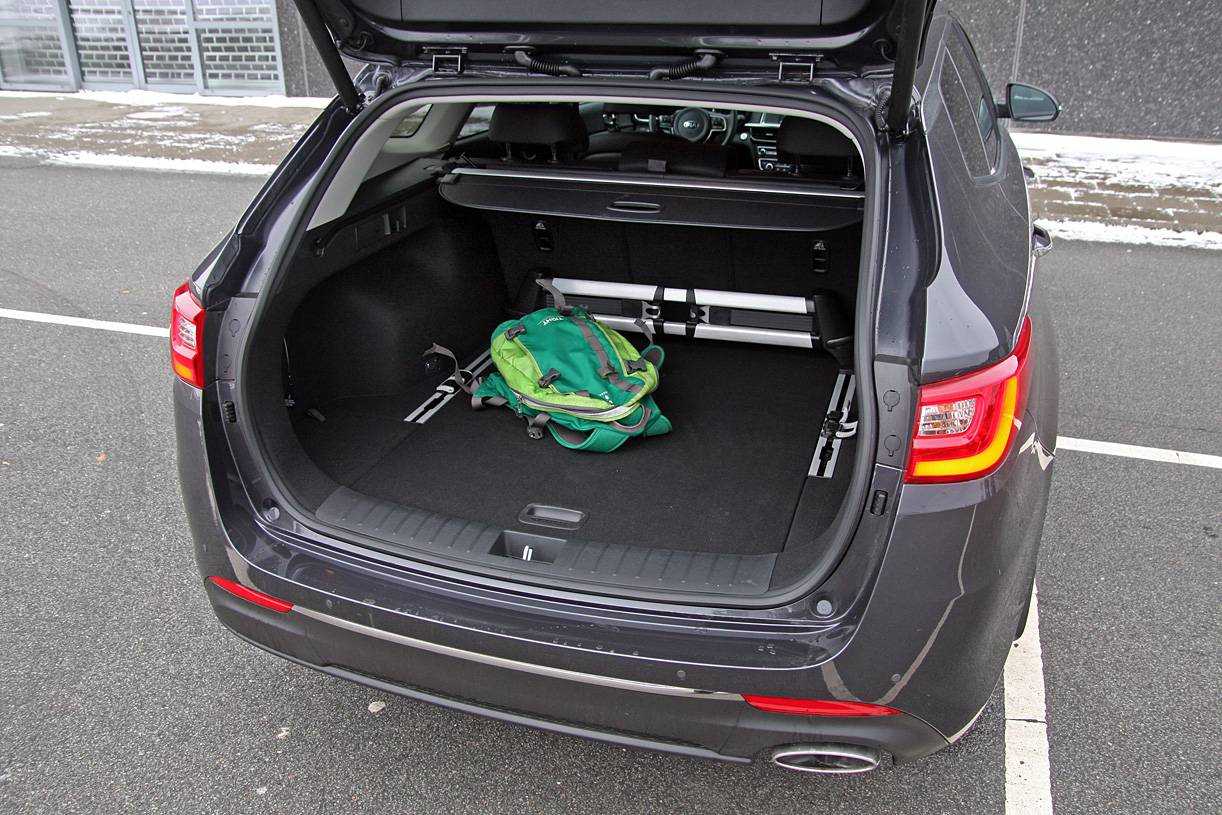 Enorm. Vi taler Skoda Superb rumfornemmelse her: Optima ser mindre ud end det tjekkiske rumuhyre, men benpladsen på bagsædet er en ministerbil værdig. Bagagerummet er mere gennemsnitligt – til gengæld disker koreanerne op med flere praktiske aflæggerum og rumdelere, der kører på skinner. Der er ingen læssekant til at udløse hekseskud, og splitbagsædet udløses ved blot at trække i et håndtag. Schreyers fif med at gøre de bagerste sideruder små og høje giver Optima et strejf af elegance, men stjæler også udsyn skråt bagud. Heldigvis er p-sensor standard.