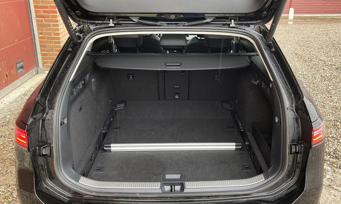 Det enorme bagagerum napper 690 liter, 1.920 med bagsæderyglænet foldet ned. Vælger man opladningshybriden, stjæler batterierne plads, og man kommer ned på mere gennemsnitlige 510 og 1.770 liter.