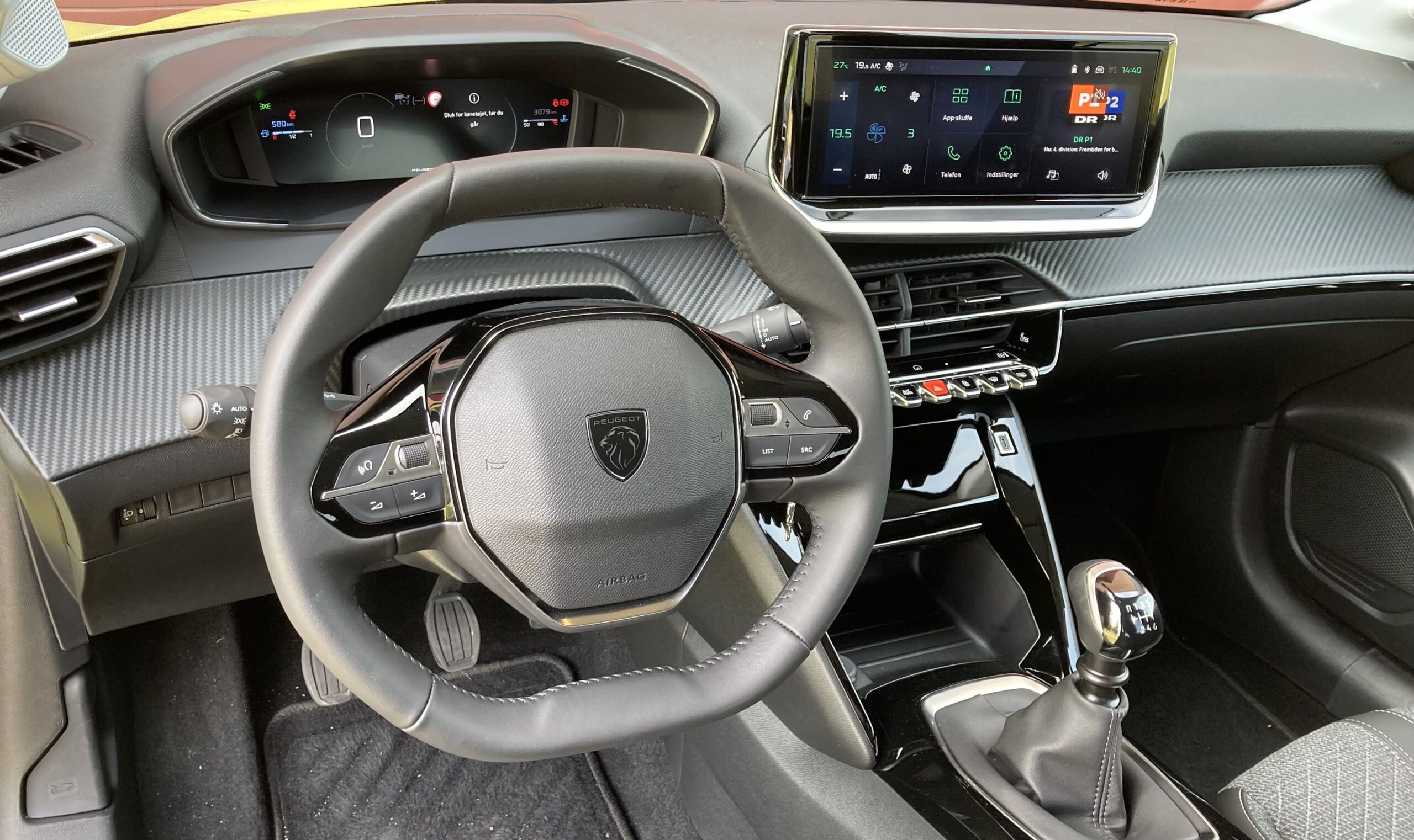 I 10 år har Peugeot skilt sig ud med sit såkaldte i-cockpit: Et lille rat, fladt i bund og top, og de centrale instrumenter højt placeret. Enten sidder det lige i skabet, eller også skal man finjustere rat og sæde for at finde den rigtige vinkel. Eller også lykkes det aldrig 100 pct. Uanset hvad vil ratudslag altid dække nogle af instrumenterne. Heller ikke afstanden til rat og pedaler passer mine forholdsvis normaltbyggede 188 cm – skal afstanden til pedalerne passe, bliver det med lidt for strakte arme. 208-sæderne støtter heller ikke optimalt.