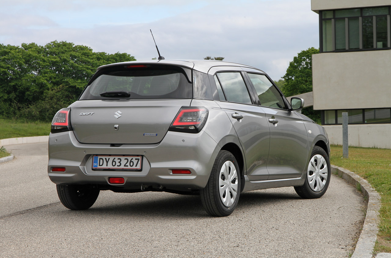 Swift har et meget lille hybridsystem, så hybrid-skiltet på bagklappen skal man ikke lade sig narre af. Det såkaldte hybridsystem håndterer stort set bare en lidt mere smooth stop-start-funktion. Dens brændstoføkonomi endte et stykke fra det lovede, og det må skyldes, at mildhybrid-systemet løber om hjørner med den testcyklus, som bilerne udsættes for. Det kræver i hvert fald en del stop-start-kørsel i byen for at komme i nærheden af de lovede 22,7 km/l.