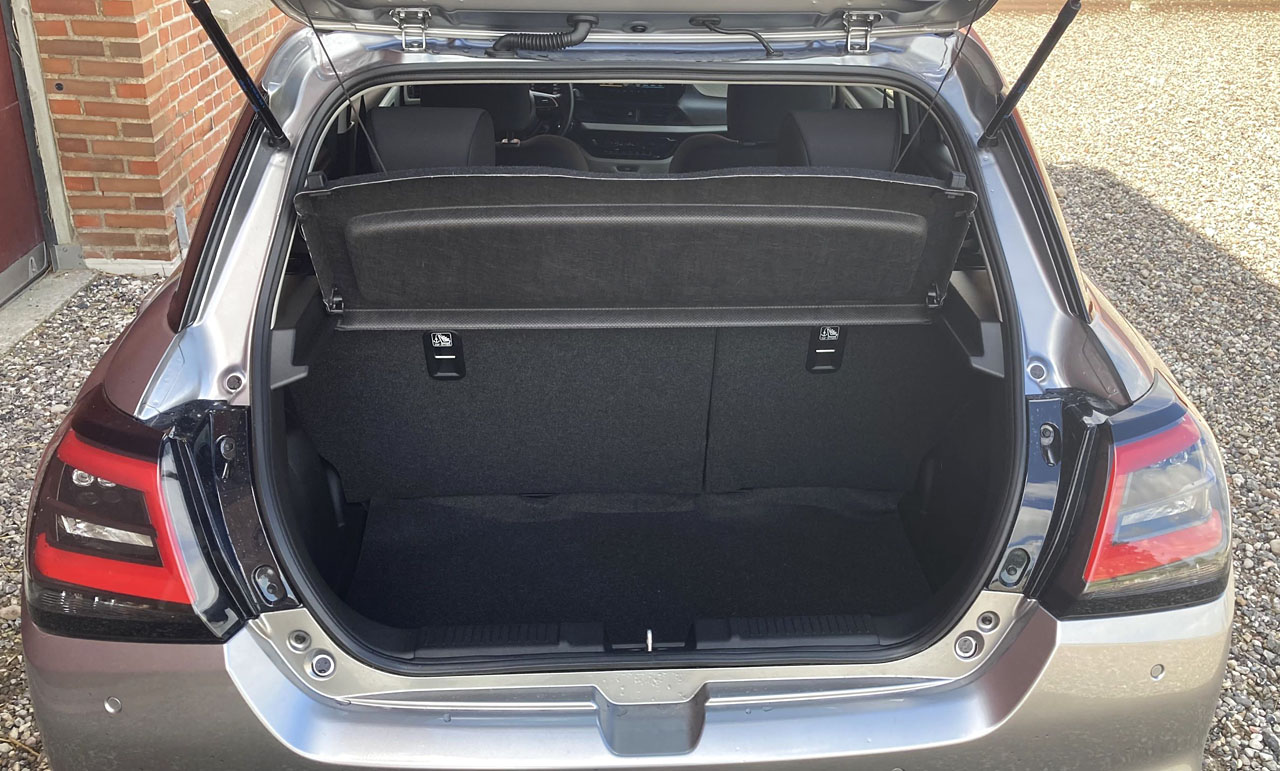 Den lille japaner er 20 centimeter kortere end de to andre, og det går ud over bagagerummet, der er testens klart mindste. Clios bagagerum kan udvides ved for 2.000 kr. at tilkøbe en justerbar bagagerumsbund, der giver 90 ekstra liter.