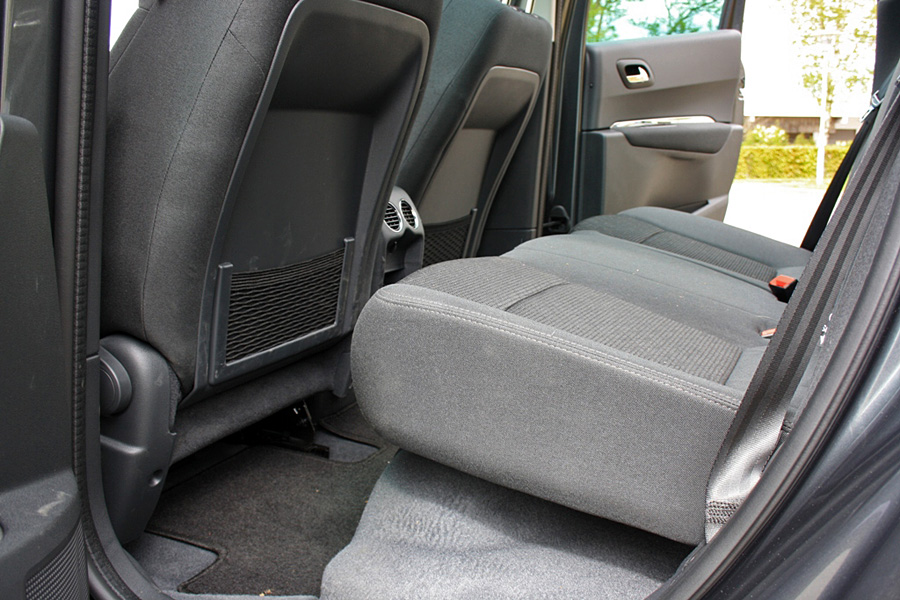 Kabinen er velindrettet i gode materialer. På bagsædet er der rimelig plads - men heller ikke mere. Hård plast på ryggen af forsæderne er ikke rart for de langbenedes knæ, og det dybe bagsæde gør det svært for børn at kigge ud. Bagagerummet har mange muligheder med sin tre-lags-opdeling, små ekstra rum, skihul i bagsæderyg og fastgørelseskroge. En smart detalje er, at bagsæderne kan lægges ned ude bag fra med et tryk på knap i hver side. Bagsmækken er to-delt, og der er plads til picnic på den nedfældede del. Ros for fuld ståhøjde under bagsmækken - uden beslag der skader hovedet. Testbilen havde panorama-glastag til 12.000 kr. ekstra. Det kan skuffende nok ikke åbnes.