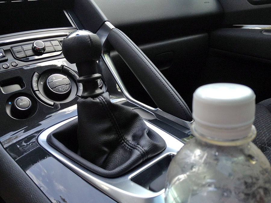 Gearstangen er ergonomisk godt placeret i den brede, høje midterkonsol, der byder på mange fralægningsmuligheder og to kopholdere. Med en flaske i førerens kopholder er det dog svært at skifte gear – lidt af en tanketorsk fra ’indretningsarkitektens’ side.