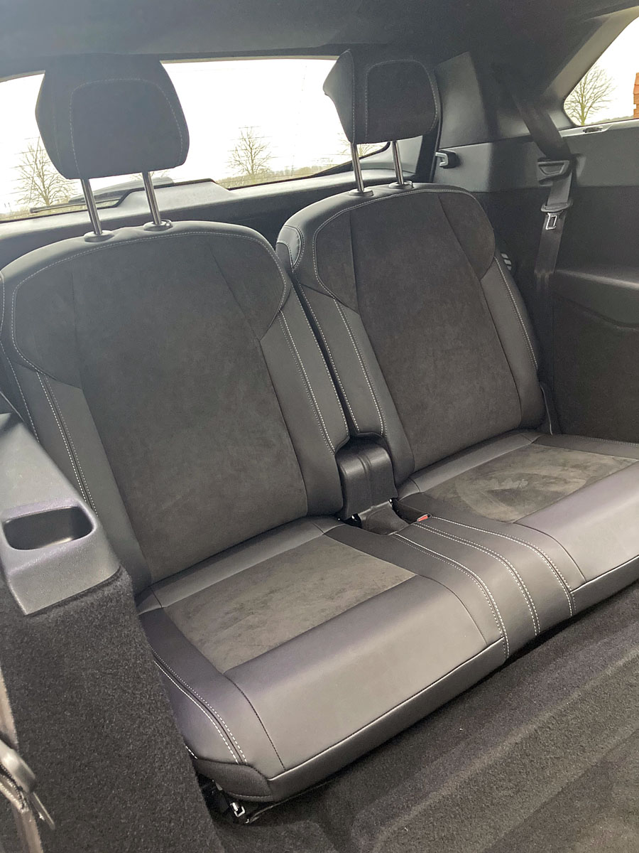 På bagerste række er afstanden fra siddefladen til gulvet lille, så man kommer til at sidde med bøjede ben deromme. Men summa summarum er det ok-bekvemt at opholde sig på sæde seks og syv, og for ikke udvoksede børn går det bedre end ok.