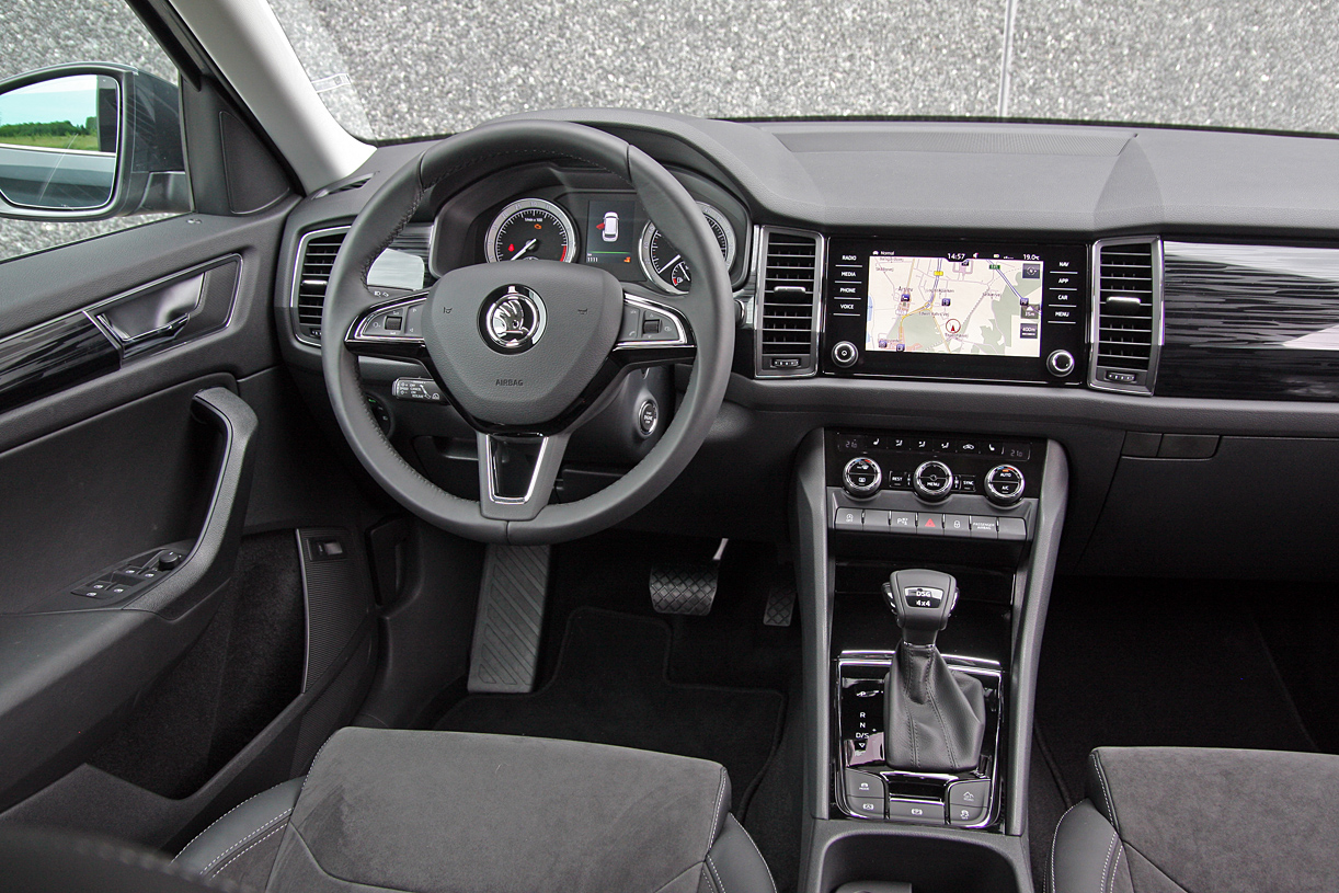 Ellers er førerpladsen typisk Skoda med tydelige instrumenter, logisk betjening og en fin ergonomi, der gør Kodiaq til en behagelig rejsevogn for hele familien. Højden gør også ind- og udstigning lettere, hvilket også skaber mange SUV-fans. Den køreglade bilist må dog finde sig i et mere fladtliggende rat – en typisk SUV-detalje, der giver kørestillingen et lille præg af at køre bus.