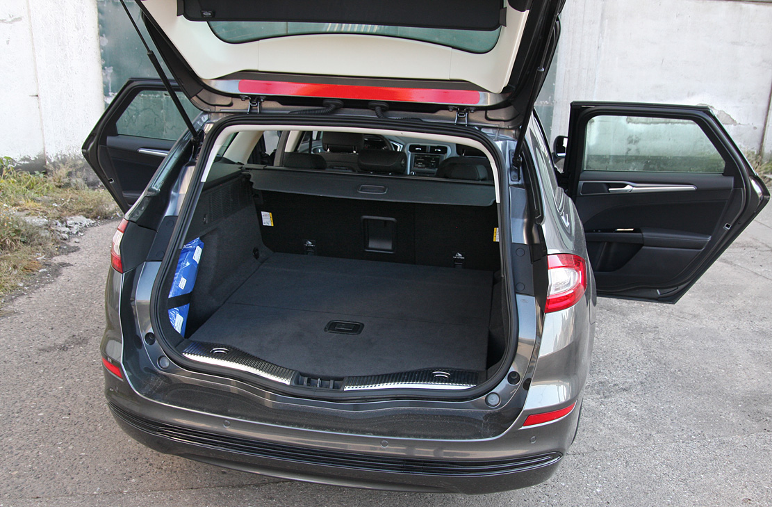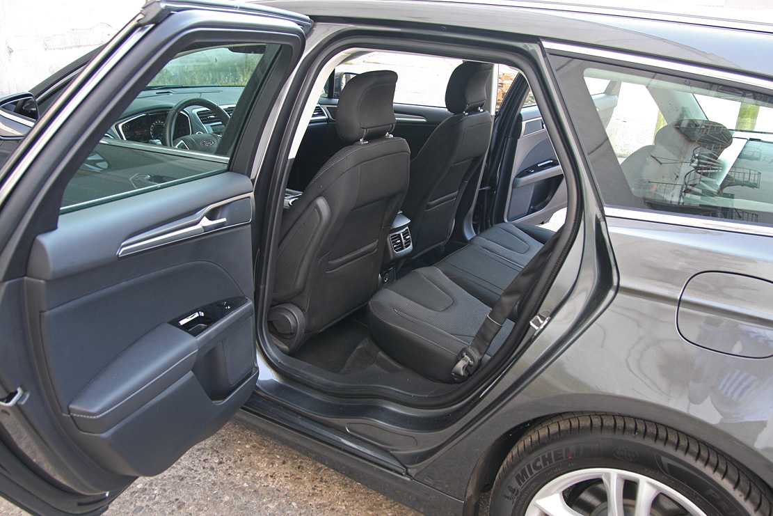 Ford Mondeo er fortsat en af firmaklassens giganter. Sjovt nok er det som om kabinen er blevet en smule mindre. Akselafstanden er hele 285 cm, men skal du have god benplads foran, må sædet langt tilbage, og det stjæler bagsædeplads. Rivalen VW Passat er 'pakket' bedre og mere rummelig, selv om den kun har 279 cm mellem akslerne. Det samme gælder bagude, hvor ladeporten af en bagklap afslører et bagagerum, der – bilens størrelse taget i betragtning – 'kun' rummer 525 liter. Mondeo er med andre ord fortsat en rummelig bil, men arkitekterne har ødslet med pladsen.