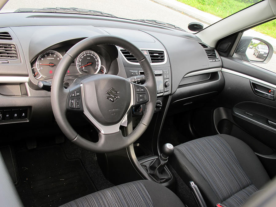 Swift byder på en fornuftig, klassisk førerplads. Forsæderne har god komfort - også til de langbenede - og læderrattet med fartpilot (Club-udstyr) lige ved hånden er lækkert at holde ved. Alle instrumenter og knapper er enkle og logisk placeret - ikke noget fancy her. Sammen med et præcist gearskifte betyder det, at basis er i orden, bortset fra at rattet ikke kan justeres i længden.