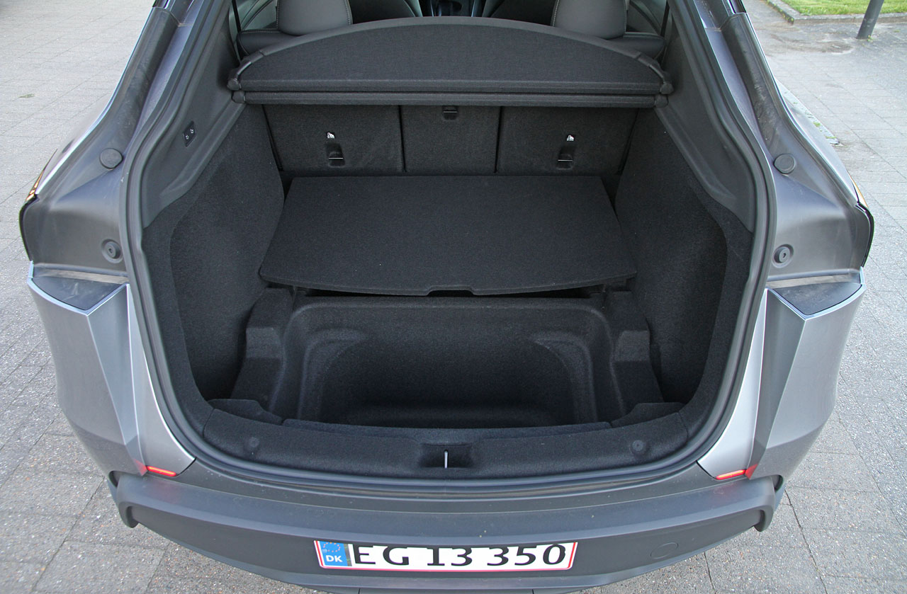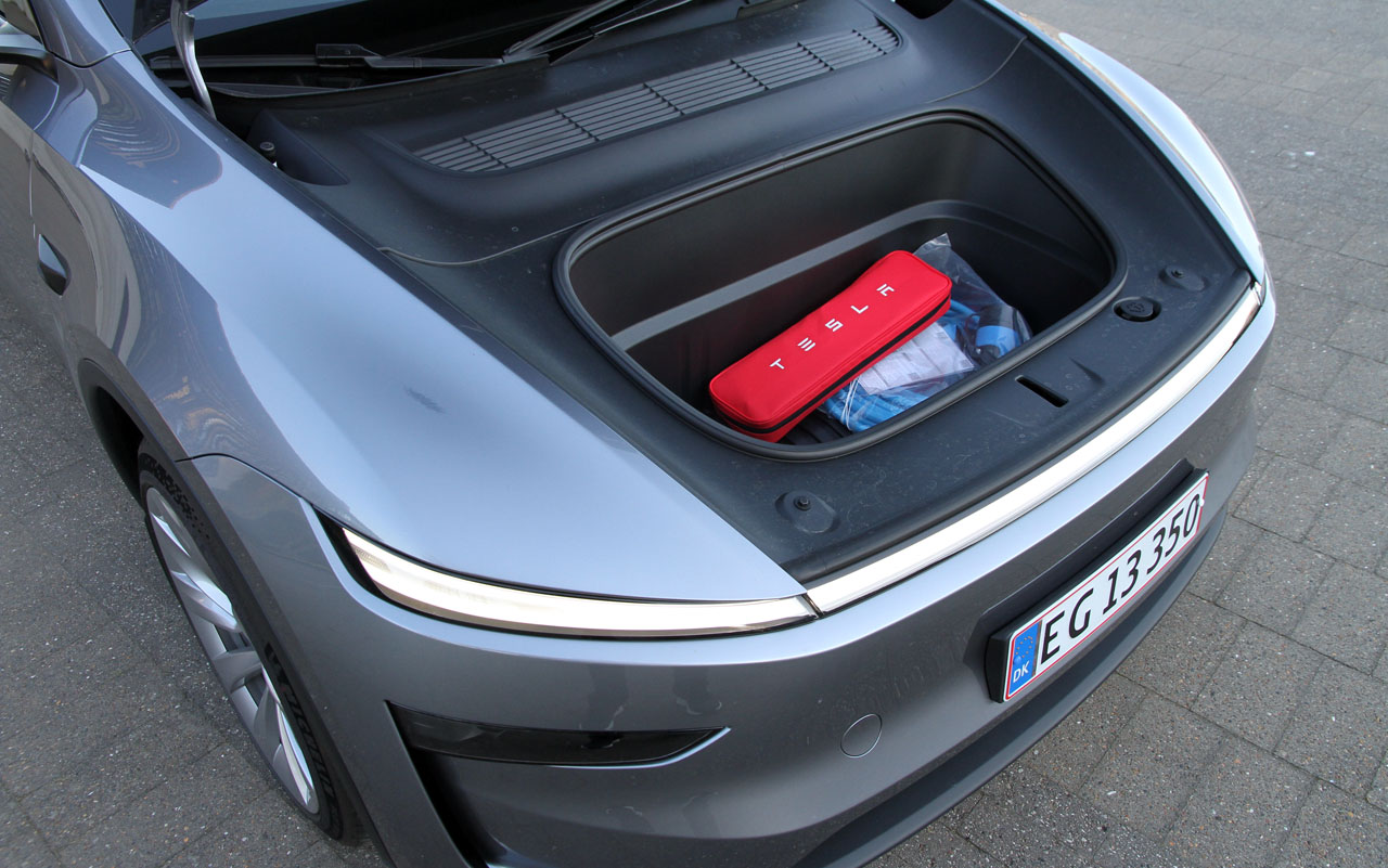 Pladsmæssigt er Model Y fortsat klasseduks. Du sidder fremragende på det høje bagsæde, hvor der både er plads til tre voksne, støtte under lårene og plads til store sko under forsæderne. Bagagerummet er et kapitel for sig. Under gulvet åbenbares en dyb kælder, der giver en samlet volume på hele 854 liter. Og så har du ikke engang fældet forsæderne frem pr. elmotor. Til overflod er der plads til 117 liter foran i det lækre frunk.