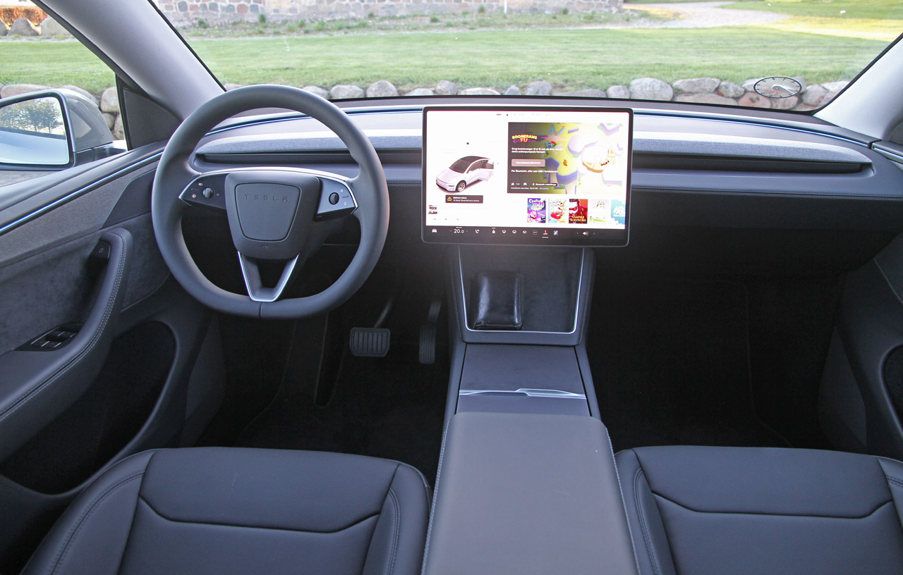 Et rat, én skærm og to pedaler. Sådan er førerpladsen i Model Y stadig indrettet.