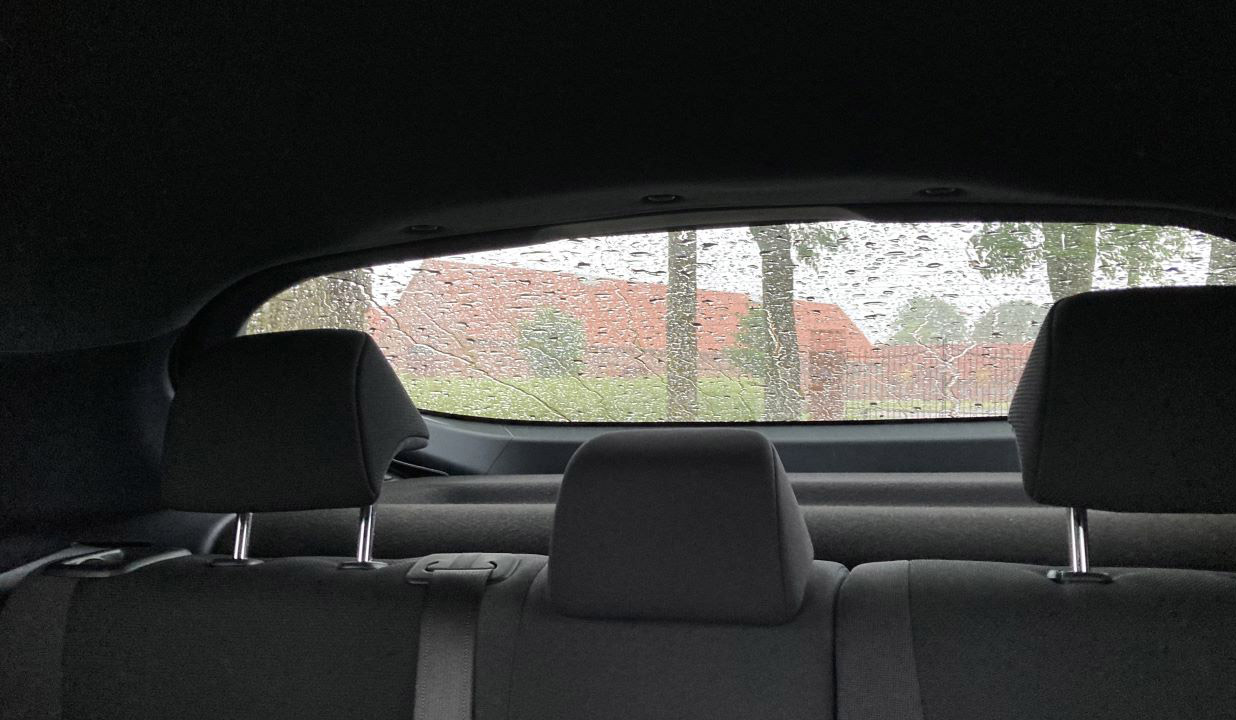 Samme C-stolpe, de høje dørsider og relativt små glasarealer i den bagerste halvdel af bilen gør, at man på bagsædet føler sig hensat til en halvdunkel hule. For passagerer med tendens til køresyge kan det være udfordrende.