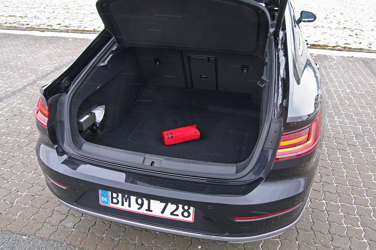 Bagagerummet spiller med og klarer sagtens den store ferieoppakning med et volume på næsten 600 liter. På den måde finder Arteon en niche som designerbil med praktisk sans – dem er der ikke mange af.